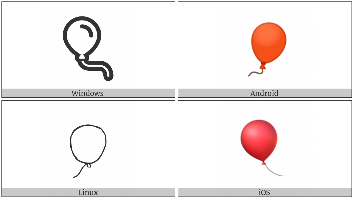 The image below shows how the “Balloon” symbol might look like on different operating systems. If the font in which this web site is displayed does not contain the symbol and there is no fallback font able to render it, you can use the image below to get an idea of what it should look like.
