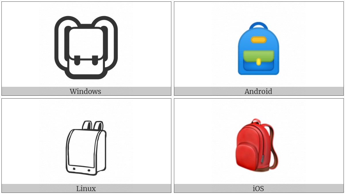 The image below shows how the “School Satchel” symbol might look like on different operating systems. If the font in which this web site is displayed does not contain the symbol and there is no fallback font able to render it, you can use the image below to get an idea of what it should look like.