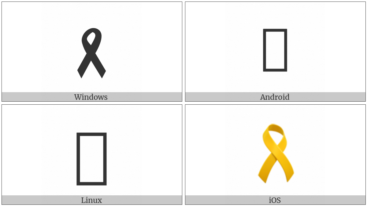 The image below shows how the “Reminder Ribbon” symbol might look like on different operating systems. If the font in which this web site is displayed does not contain the symbol and there is no fallback font able to render it, you can use the image below to get an idea of what it should look like.