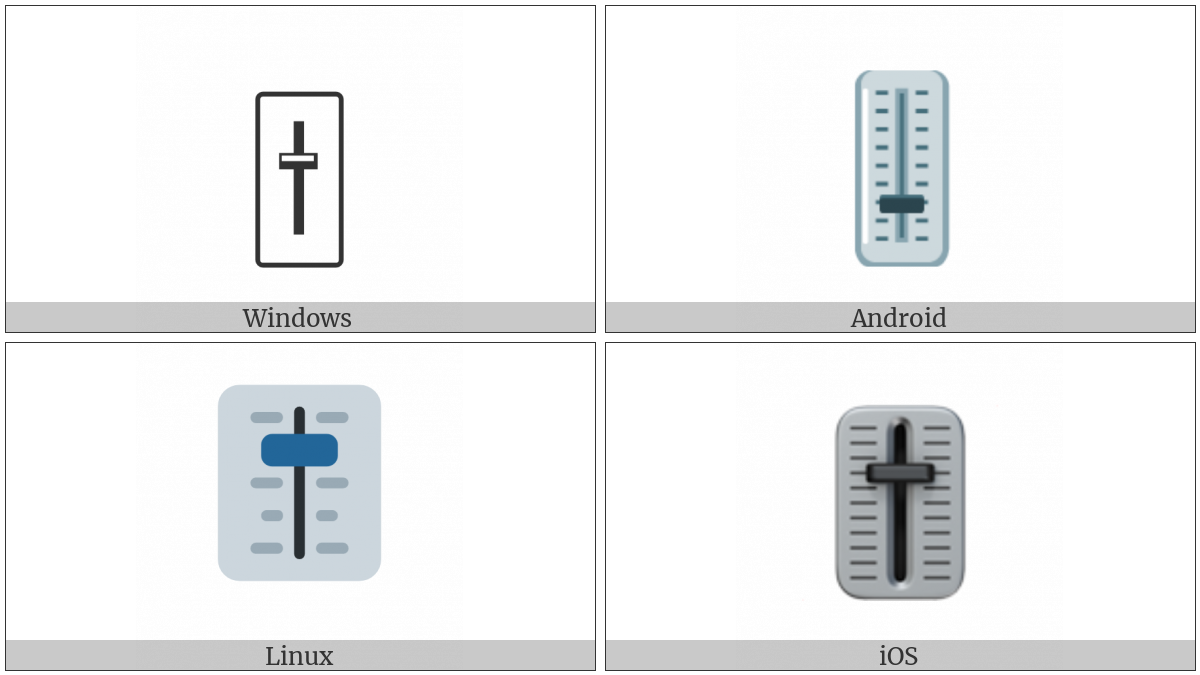 The image below shows how the “Level Slider” symbol might look like on different operating systems. If the font in which this web site is displayed does not contain the symbol and there is no fallback font able to render it, you can use the image below to get an idea of what it should look like.