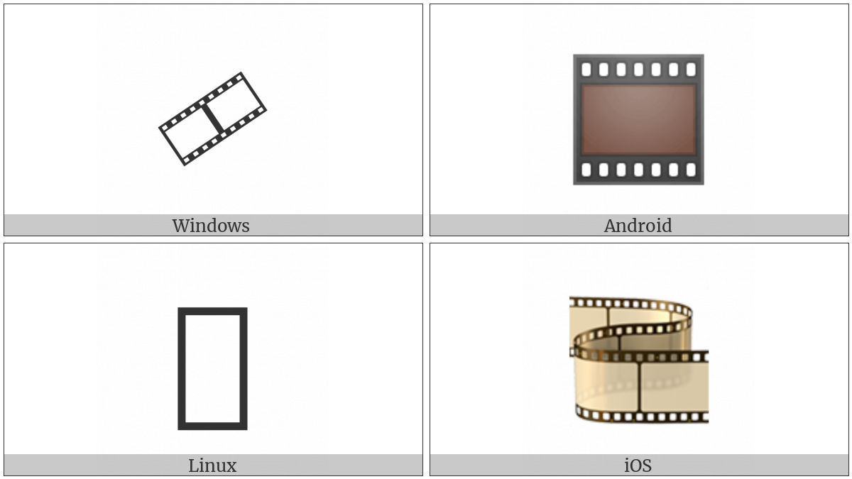 The image below shows how the “Film Frames” symbol might look like on different operating systems. If the font in which this web site is displayed does not contain the symbol and there is no fallback font able to render it, you can use the image below to get an idea of what it should look like.