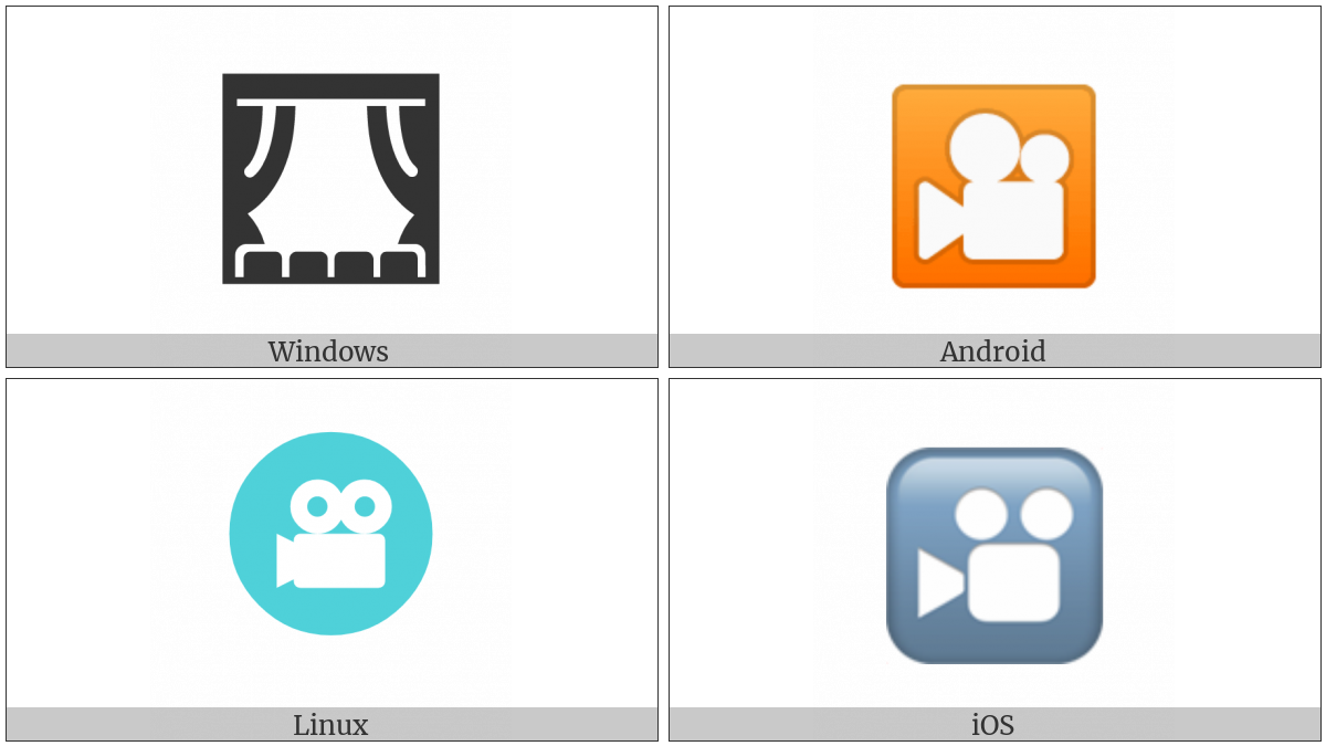 The image below shows how the “Cinema” symbol might look like on different operating systems. If the font in which this web site is displayed does not contain the symbol and there is no fallback font able to render it, you can use the image below to get an idea of what it should look like.