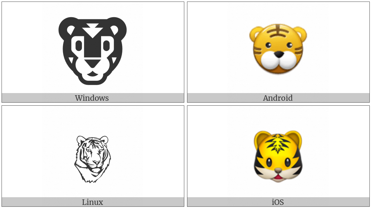 The image below shows how the “Tiger Face” symbol might look like on different operating systems. If the font in which this web site is displayed does not contain the symbol and there is no fallback font able to render it, you can use the image below to get an idea of what it should look like.