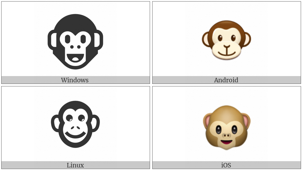The image below shows how the “Monkey Face” symbol might look like on different operating systems. If the font in which this web site is displayed does not contain the symbol and there is no fallback font able to render it, you can use the image below to get an idea of what it should look like.
