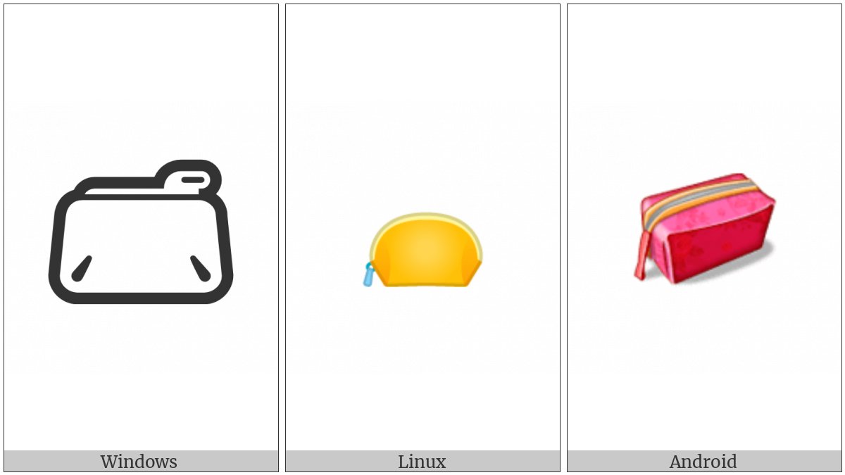 The image below shows how the “Pouch” symbol might look like on different operating systems. If the font in which this web site is displayed does not contain the symbol and there is no fallback font able to render it, you can use the image below to get an idea of what it should look like.