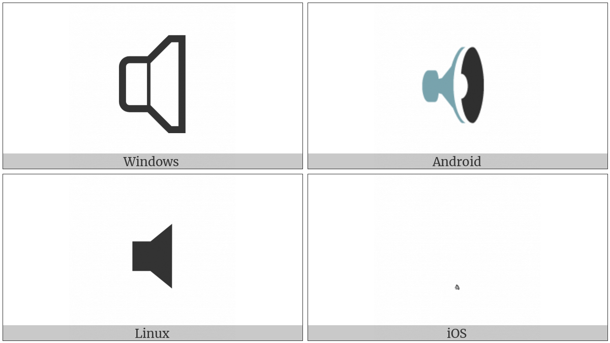 The image below shows how the “Speaker” symbol might look like on different operating systems. If the font in which this web site is displayed does not contain the symbol and there is no fallback font able to render it, you can use the image below to get an idea of what it should look like.