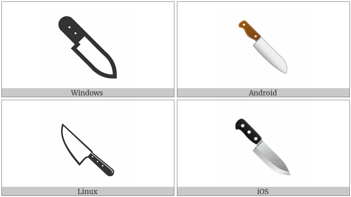 The image below shows how the “Hocho” symbol might look like on different operating systems. If the font in which this web site is displayed does not contain the symbol and there is no fallback font able to render it, you can use the image below to get an idea of what it should look like.