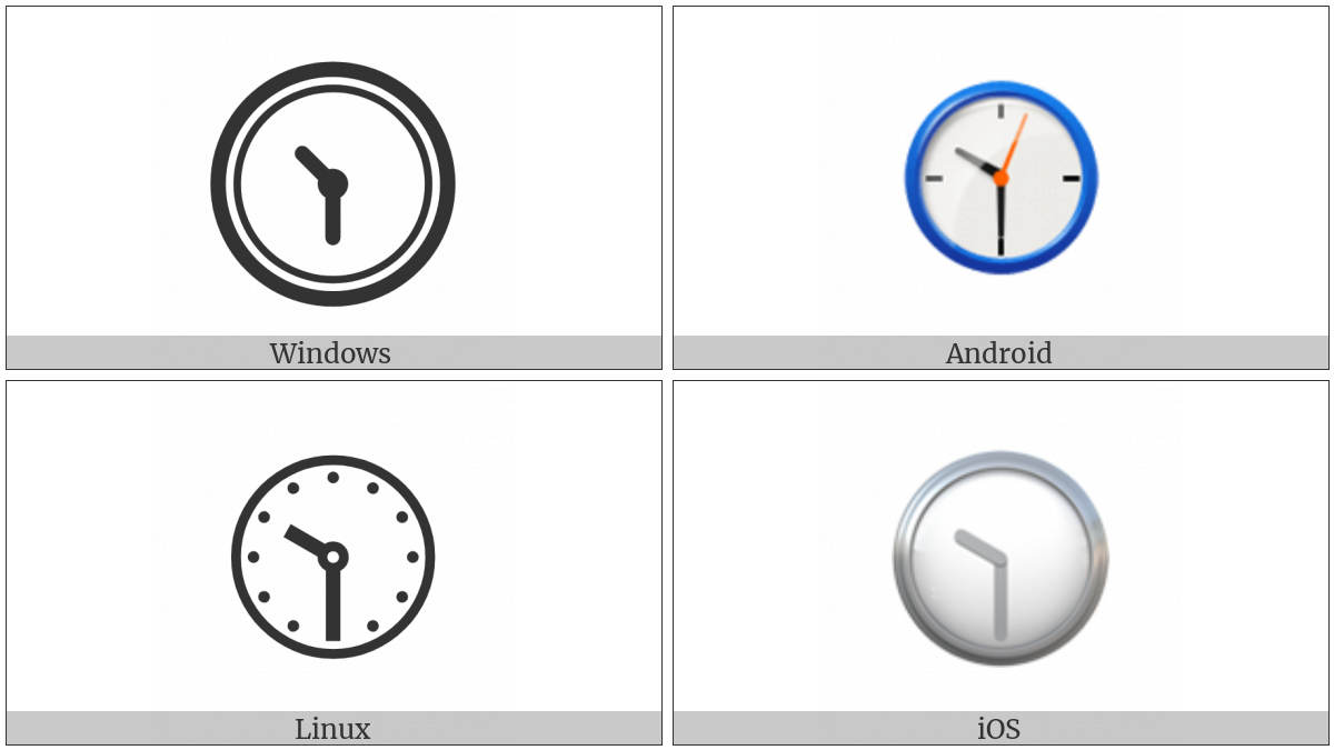 The image below shows how the “Clock Face Ten-Thirty” symbol might look like on different operating systems. If the font in which this web site is displayed does not contain the symbol and there is no fallback font able to render it, you can use the image below to get an idea of what it should look like.
