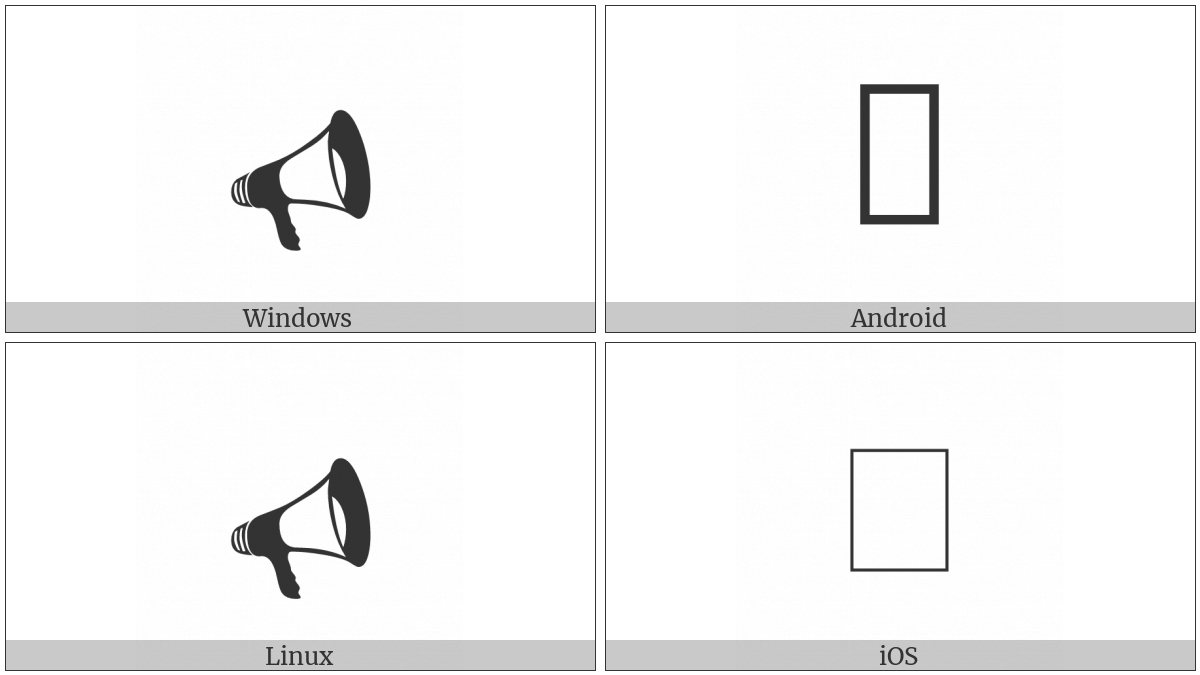 The image below shows how the “Bullhorn” symbol might look like on different operating systems. If the font in which this web site is displayed does not contain the symbol and there is no fallback font able to render it, you can use the image below to get an idea of what it should look like.
