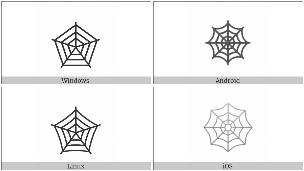 The image below shows how the “Spider Web” symbol might look like on different operating systems. If the font in which this web site is displayed does not contain the symbol and there is no fallback font able to render it, you can use the image below to get an idea of what it should look like.
