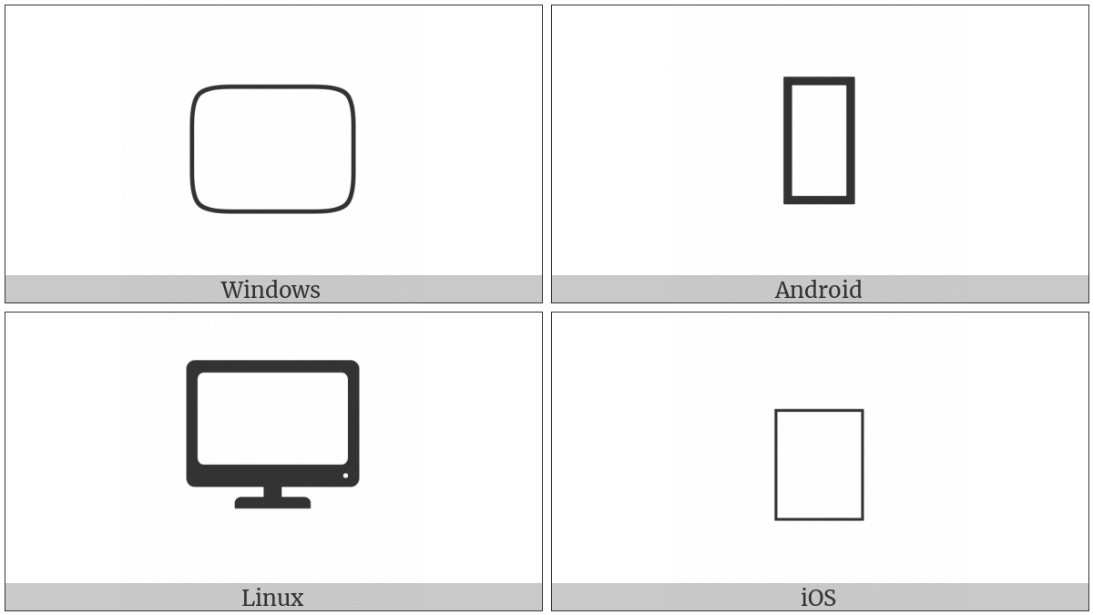 The image below shows how the “Screen” symbol might look like on different operating systems. If the font in which this web site is displayed does not contain the symbol and there is no fallback font able to render it, you can use the image below to get an idea of what it should look like.