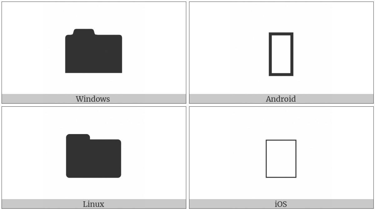 The image below shows how the “Black Folder” symbol might look like on different operating systems. If the font in which this web site is displayed does not contain the symbol and there is no fallback font able to render it, you can use the image below to get an idea of what it should look like.