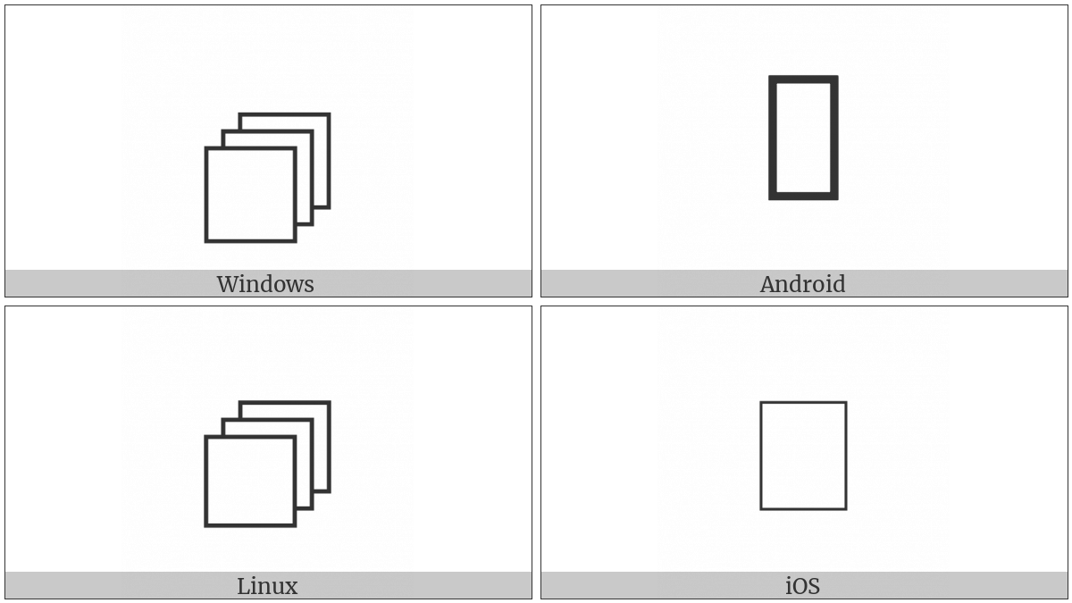 The image below shows how the “Empty Note Pad” symbol might look like on different operating systems. If the font in which this web site is displayed does not contain the symbol and there is no fallback font able to render it, you can use the image below to get an idea of what it should look like.