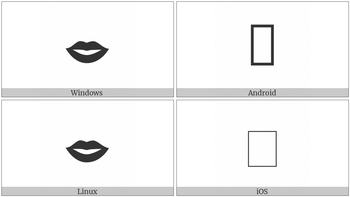 The image below shows how the “Lips” symbol might look like on different operating systems. If the font in which this web site is displayed does not contain the symbol and there is no fallback font able to render it, you can use the image below to get an idea of what it should look like.