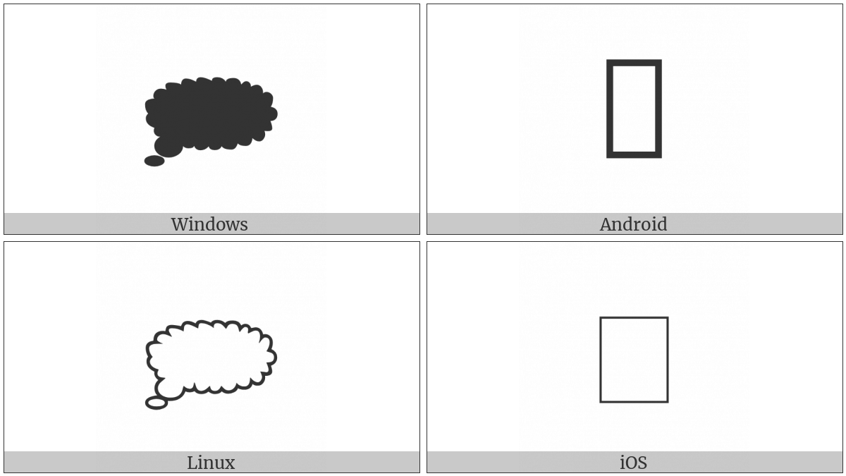 The image below shows how the “Right Thought Bubble” symbol might look like on different operating systems. If the font in which this web site is displayed does not contain the symbol and there is no fallback font able to render it, you can use the image below to get an idea of what it should look like.