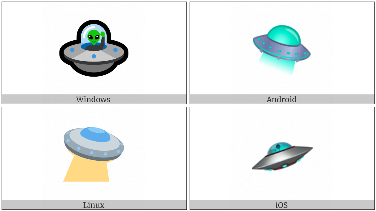 The image below shows how the “Flying Saucer” symbol might look like on different operating systems. If the font in which this web site is displayed does not contain the symbol and there is no fallback font able to render it, you can use the image below to get an idea of what it should look like.