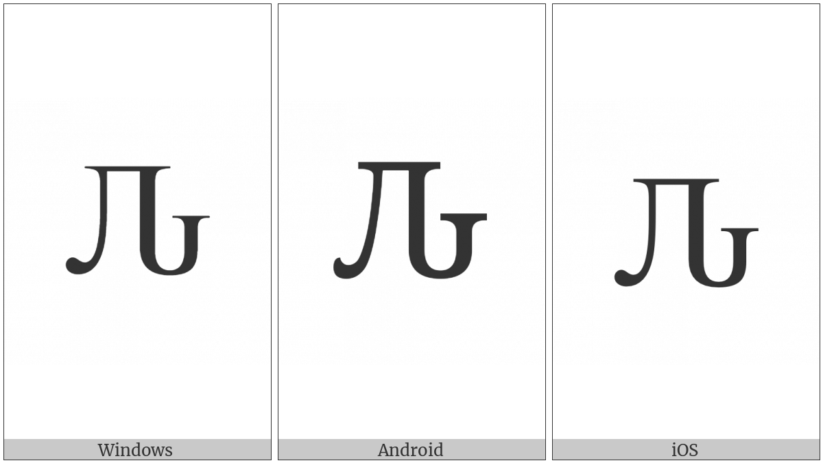 The image below shows how the “Cyrillic Capital Letter Komi Lje” symbol might look like on different operating systems. If the font in which this web site is displayed does not contain the symbol and there is no fallback font able to render it, you can use the image below to get an idea of what it should look like.