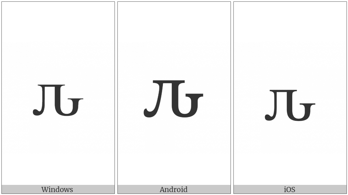 The image below shows how the “Cyrillic Small Letter Komi Lje” symbol might look like on different operating systems. If the font in which this web site is displayed does not contain the symbol and there is no fallback font able to render it, you can use the image below to get an idea of what it should look like.