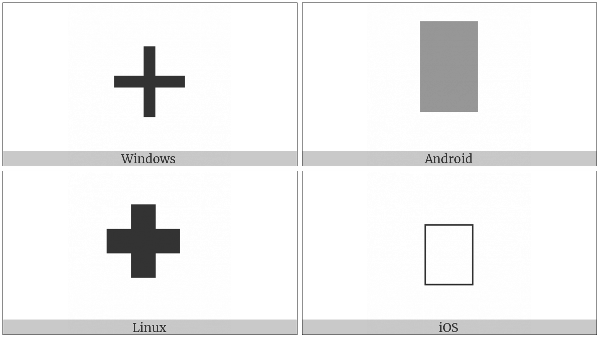 The image below shows how the “Bold Greek Cross” symbol might look like on different operating systems. If the font in which this web site is displayed does not contain the symbol and there is no fallback font able to render it, you can use the image below to get an idea of what it should look like.