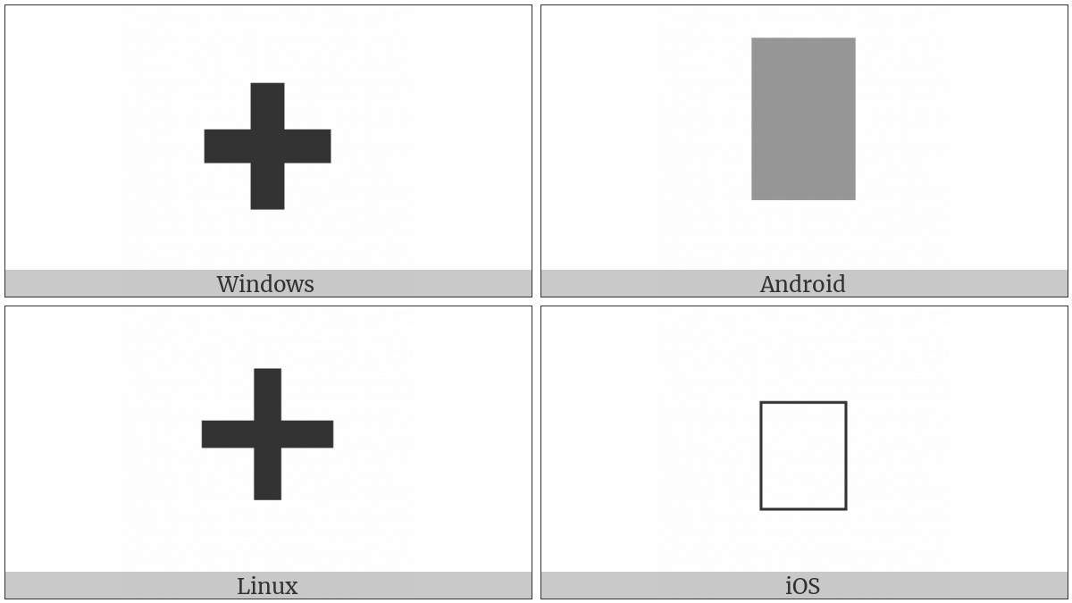 The image below shows how the “Very Heavy Greek Cross” symbol might look like on different operating systems. If the font in which this web site is displayed does not contain the symbol and there is no fallback font able to render it, you can use the image below to get an idea of what it should look like.
