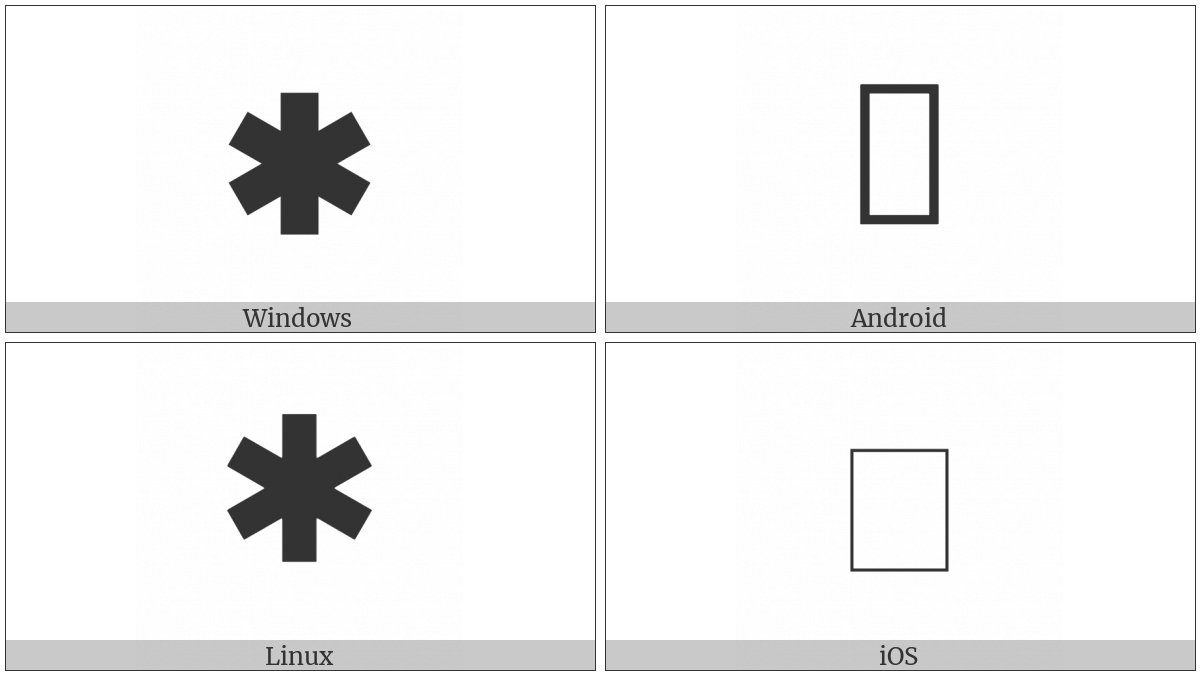 “Extremely Heavy Six Spoked Asterisk” on various operating systems