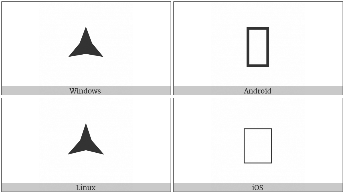 The image below shows how the “Three Pointed Black Star” symbol might look like on different operating systems. If the font in which this web site is displayed does not contain the symbol and there is no fallback font able to render it, you can use the image below to get an idea of what it should look like.