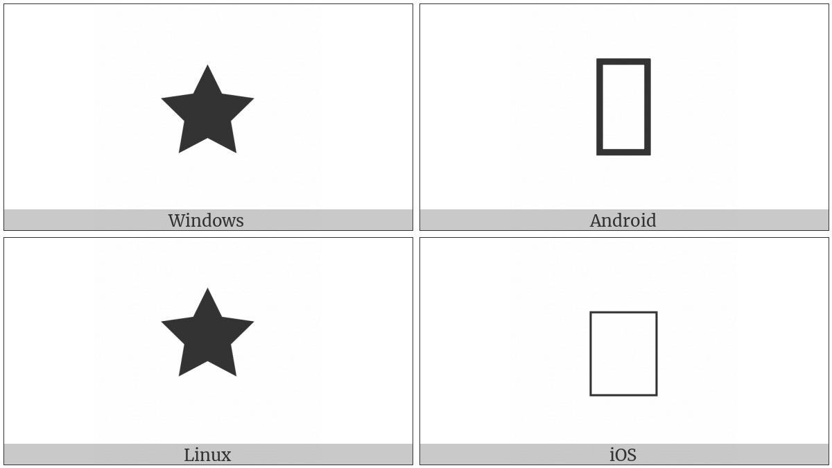 The image below shows how the “Heavy Five Pointed Black Star” symbol might look like on different operating systems. If the font in which this web site is displayed does not contain the symbol and there is no fallback font able to render it, you can use the image below to get an idea of what it should look like.