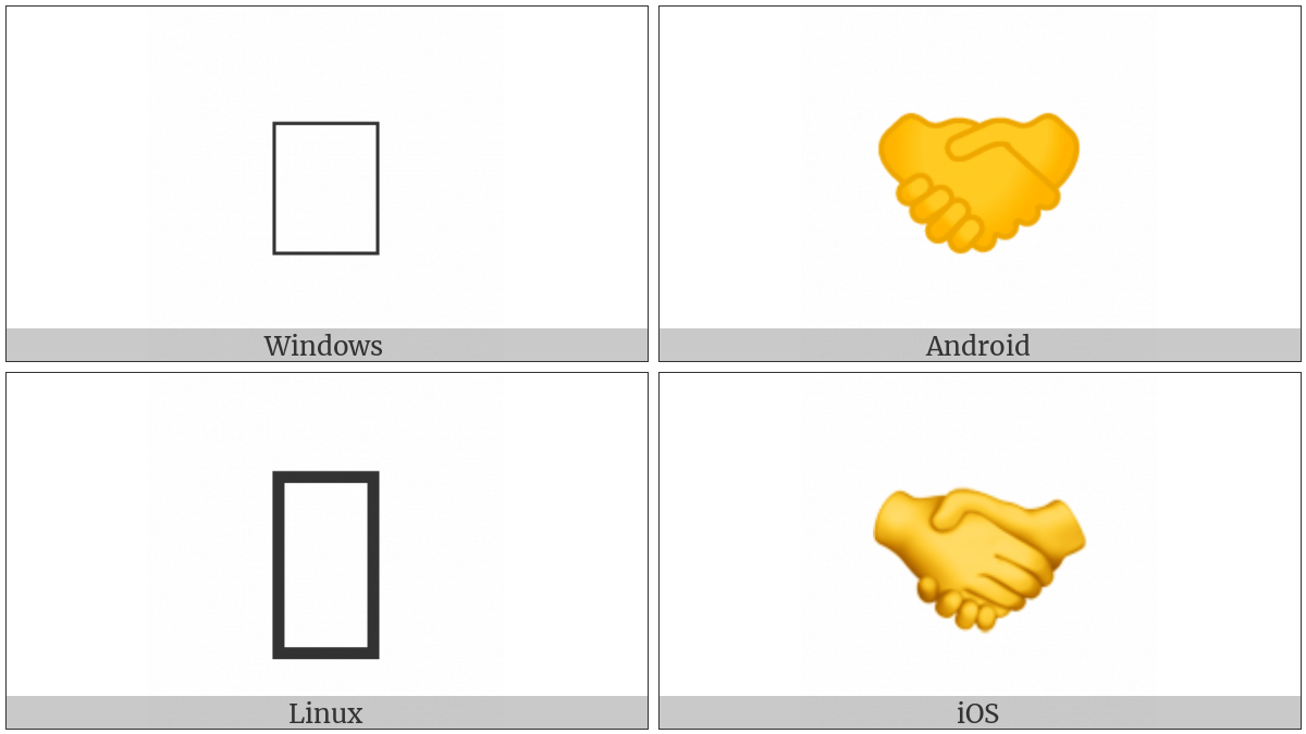 The image below shows how the “Handshake” symbol might look like on different operating systems. If the font in which this web site is displayed does not contain the symbol and there is no fallback font able to render it, you can use the image below to get an idea of what it should look like.