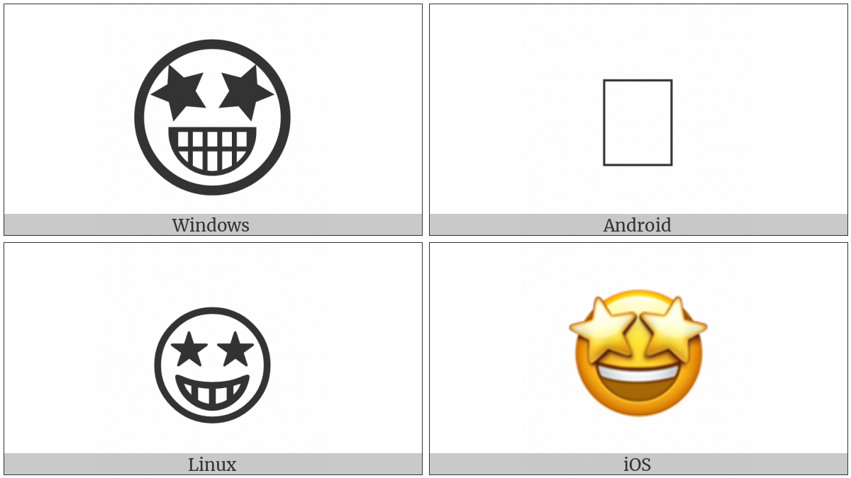 The image below shows how the “Grinning Face With Star Eyes” symbol might look like on different operating systems. If the font in which this web site is displayed does not contain the symbol and there is no fallback font able to render it, you can use the image below to get an idea of what it should look like.