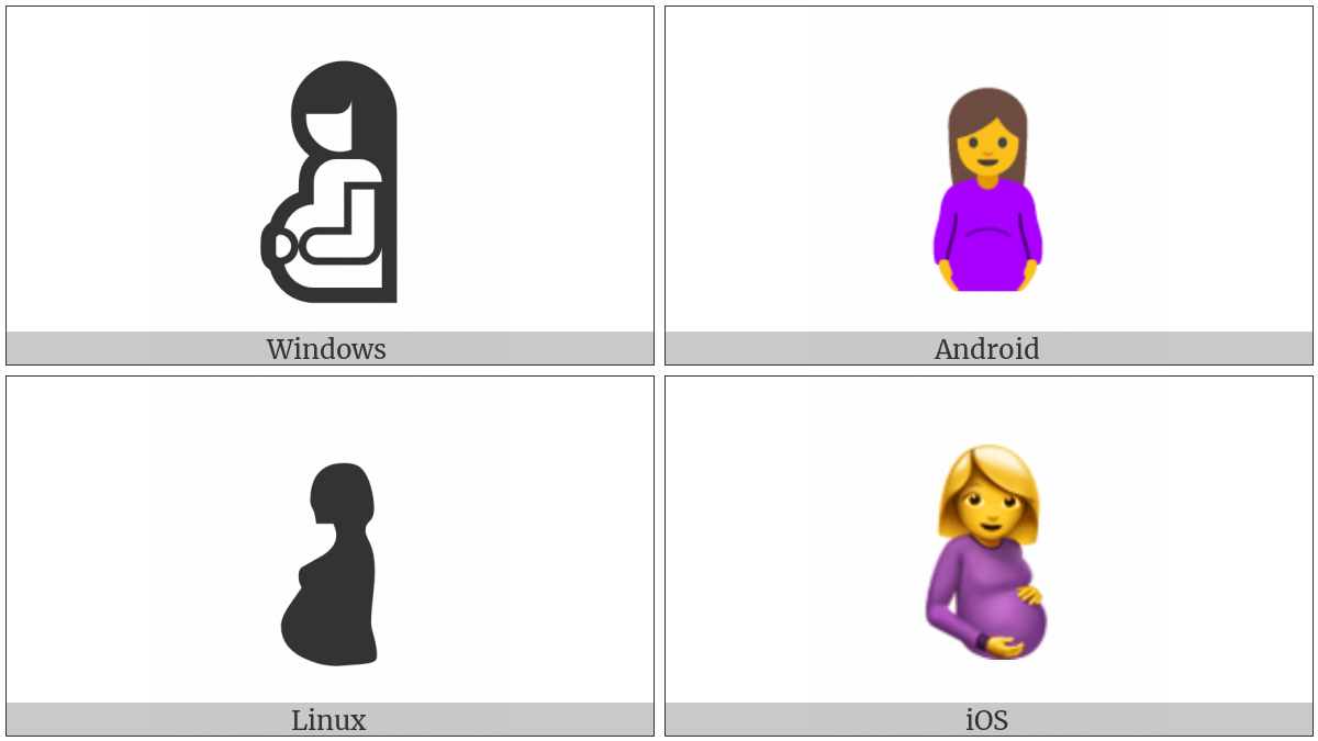 The image below shows how the “Pregnant Woman” symbol might look like on different operating systems. If the font in which this web site is displayed does not contain the symbol and there is no fallback font able to render it, you can use the image below to get an idea of what it should look like.