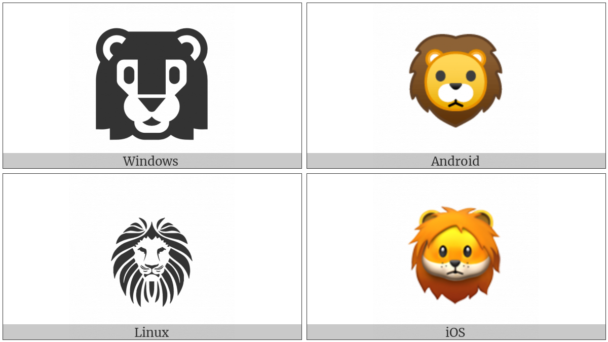 The image below shows how the “Lion Face” symbol might look like on different operating systems. If the font in which this web site is displayed does not contain the symbol and there is no fallback font able to render it, you can use the image below to get an idea of what it should look like.