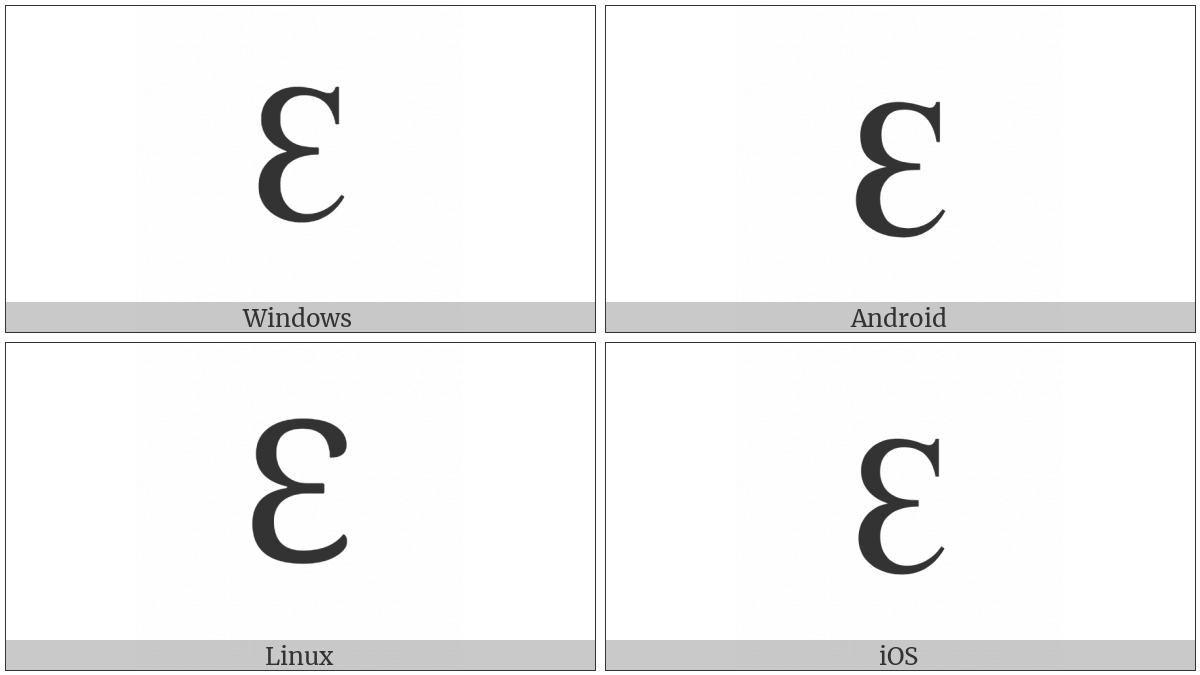 The image below shows how the “Cyrillic Capital Letter Reversed Ze” symbol might look like on different operating systems. If the font in which this web site is displayed does not contain the symbol and there is no fallback font able to render it, you can use the image below to get an idea of what it should look like.