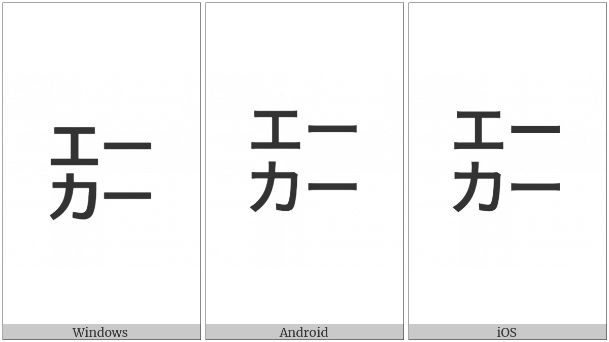 The image below shows how the “Square Eekaa” symbol might look like on different operating systems. If the font in which this web site is displayed does not contain the symbol and there is no fallback font able to render it, you can use the image below to get an idea of what it should look like.