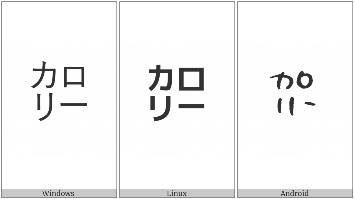 The image below shows how the “Square Karorii” symbol might look like on different operating systems. If the font in which this web site is displayed does not contain the symbol and there is no fallback font able to render it, you can use the image below to get an idea of what it should look like.