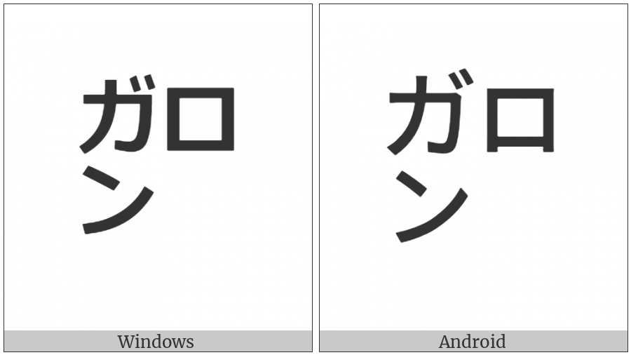 The image below shows how the “Square Garon” symbol might look like on different operating systems. If the font in which this web site is displayed does not contain the symbol and there is no fallback font able to render it, you can use the image below to get an idea of what it should look like.