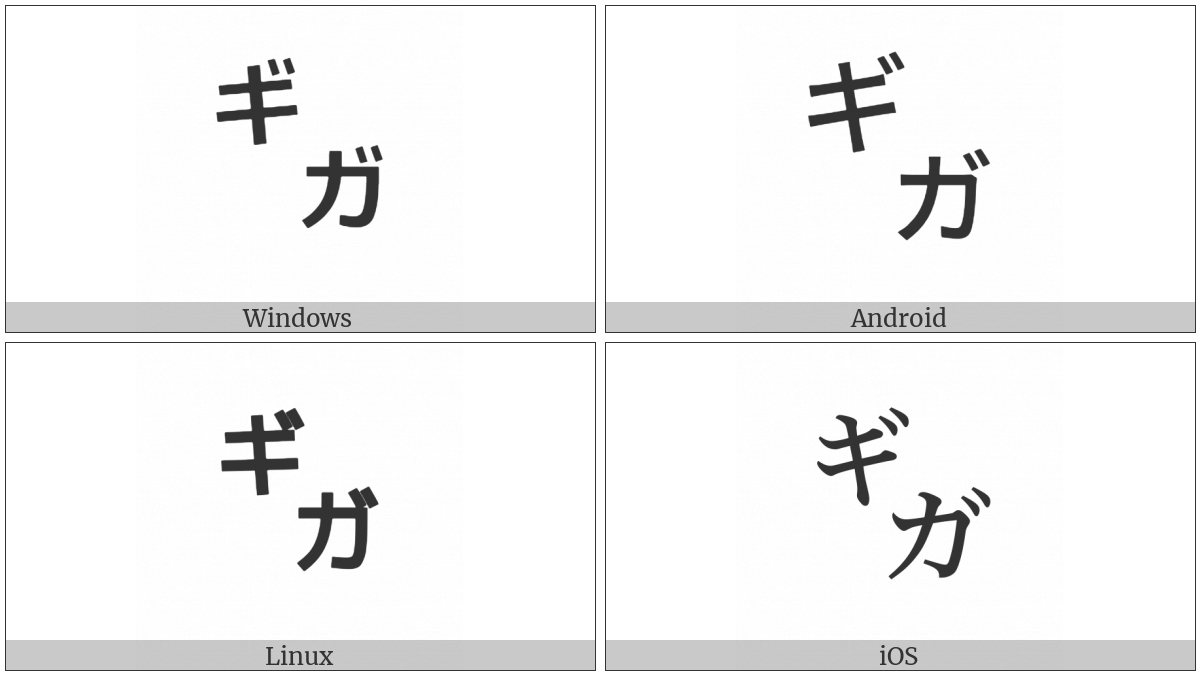 The image below shows how the “Square Giga” symbol might look like on different operating systems. If the font in which this web site is displayed does not contain the symbol and there is no fallback font able to render it, you can use the image below to get an idea of what it should look like.
