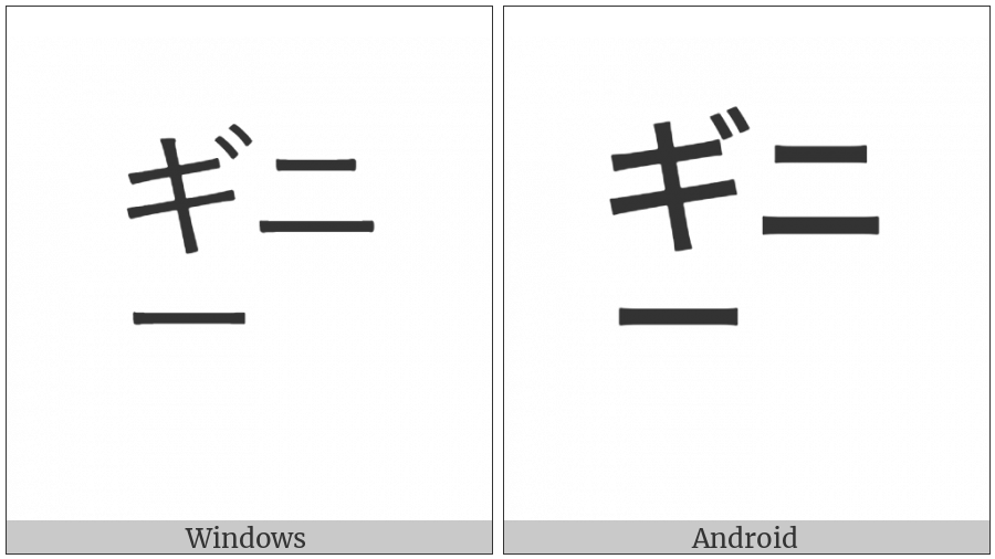 The image below shows how the “Square Ginii” symbol might look like on different operating systems. If the font in which this web site is displayed does not contain the symbol and there is no fallback font able to render it, you can use the image below to get an idea of what it should look like.