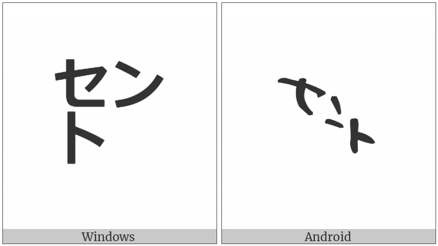 The image below shows how the “Square Sento” symbol might look like on different operating systems. If the font in which this web site is displayed does not contain the symbol and there is no fallback font able to render it, you can use the image below to get an idea of what it should look like.
