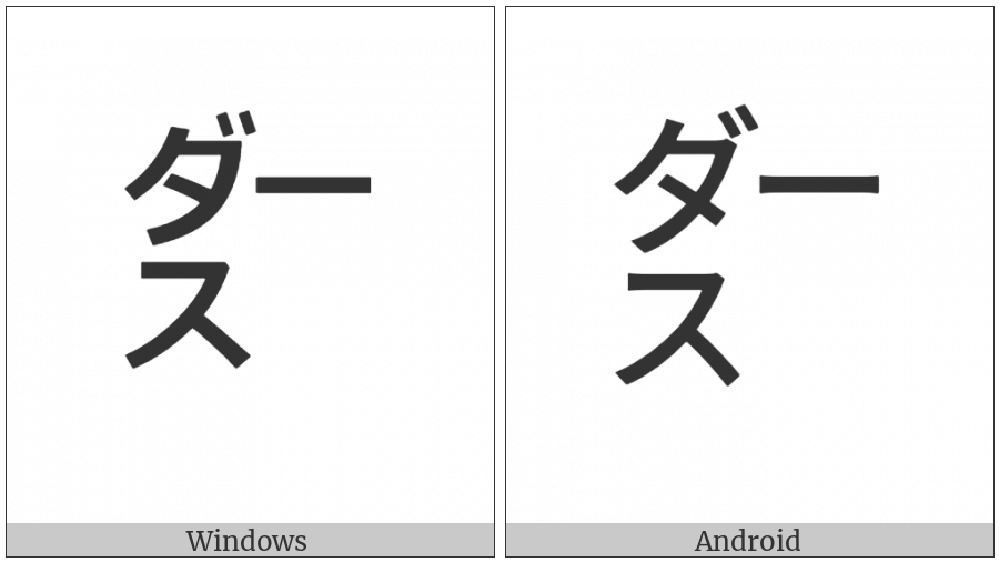 The image below shows how the “Square Daasu” symbol might look like on different operating systems. If the font in which this web site is displayed does not contain the symbol and there is no fallback font able to render it, you can use the image below to get an idea of what it should look like.