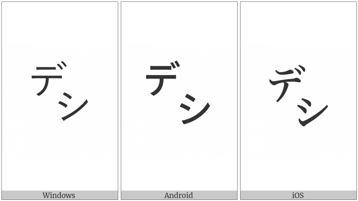 The image below shows how the “Square Desi” symbol might look like on different operating systems. If the font in which this web site is displayed does not contain the symbol and there is no fallback font able to render it, you can use the image below to get an idea of what it should look like.
