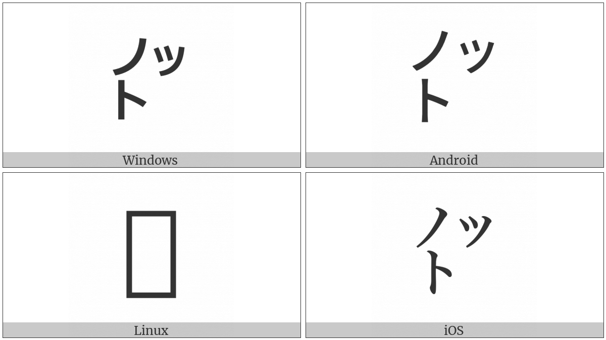 The image below shows how the “Square Notto” symbol might look like on different operating systems. If the font in which this web site is displayed does not contain the symbol and there is no fallback font able to render it, you can use the image below to get an idea of what it should look like.