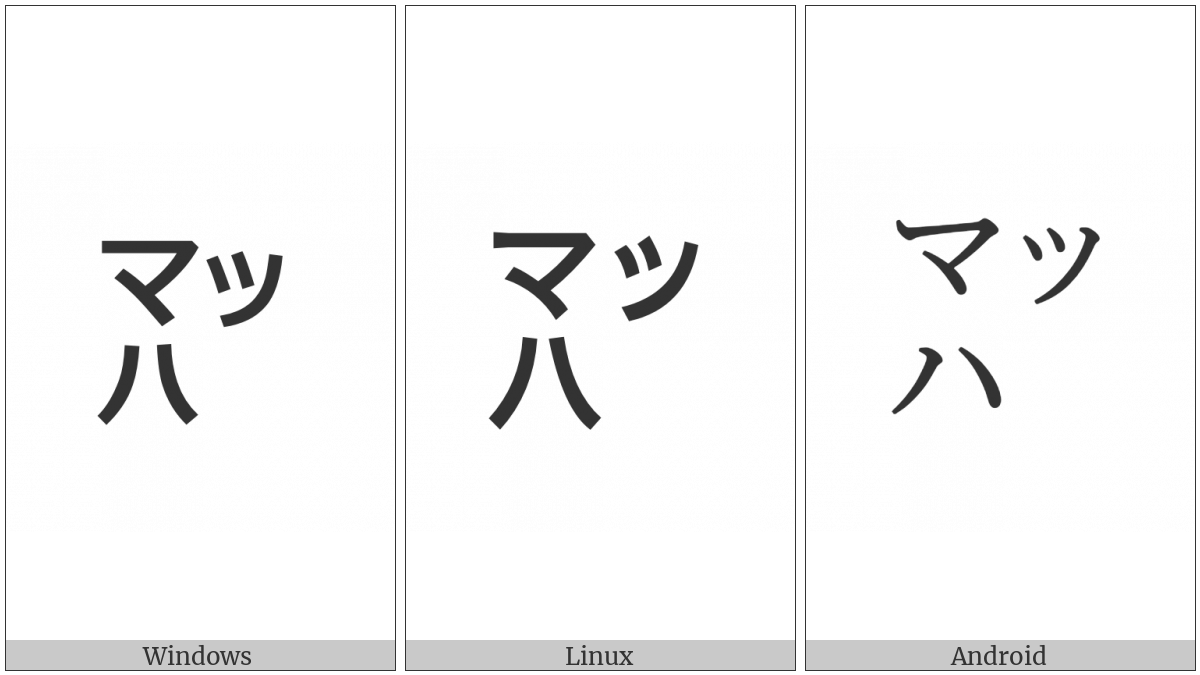 The image below shows how the “Square Mahha” symbol might look like on different operating systems. If the font in which this web site is displayed does not contain the symbol and there is no fallback font able to render it, you can use the image below to get an idea of what it should look like.