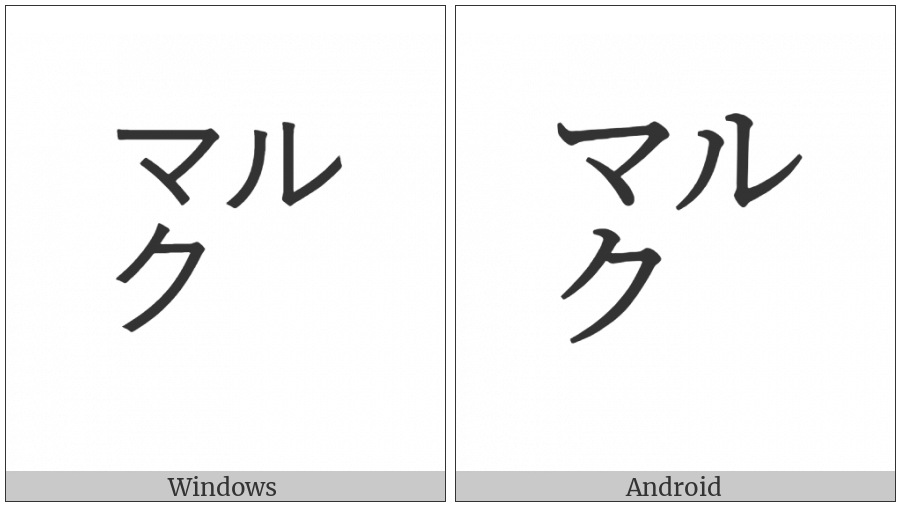 The image below shows how the “Square Maruku” symbol might look like on different operating systems. If the font in which this web site is displayed does not contain the symbol and there is no fallback font able to render it, you can use the image below to get an idea of what it should look like.
