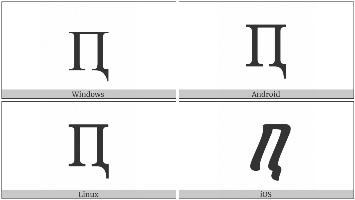 “Cyrillic Capital Letter Pe With Descender” on various operating systems