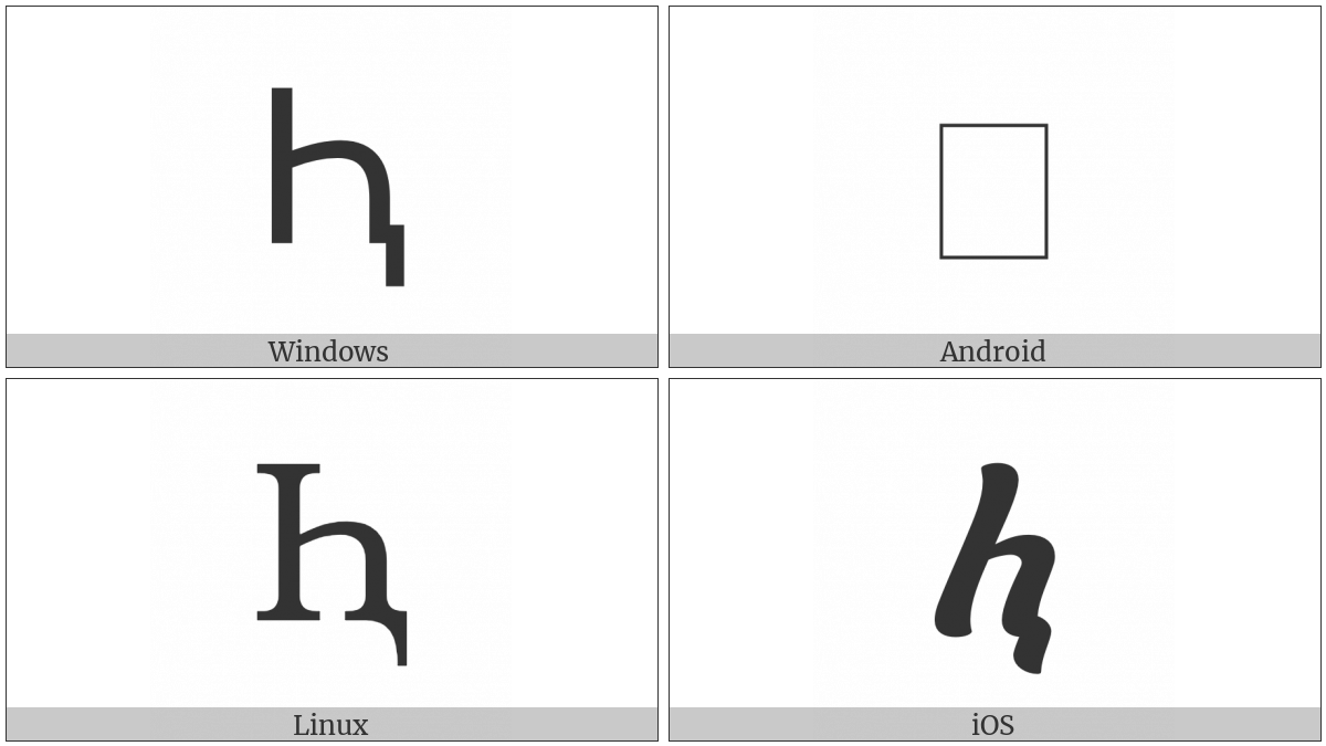 The image below shows how the “Cyrillic Capital Letter Shha With Descender” symbol might look like on different operating systems. If the font in which this web site is displayed does not contain the symbol and there is no fallback font able to render it, you can use the image below to get an idea of what it should look like.