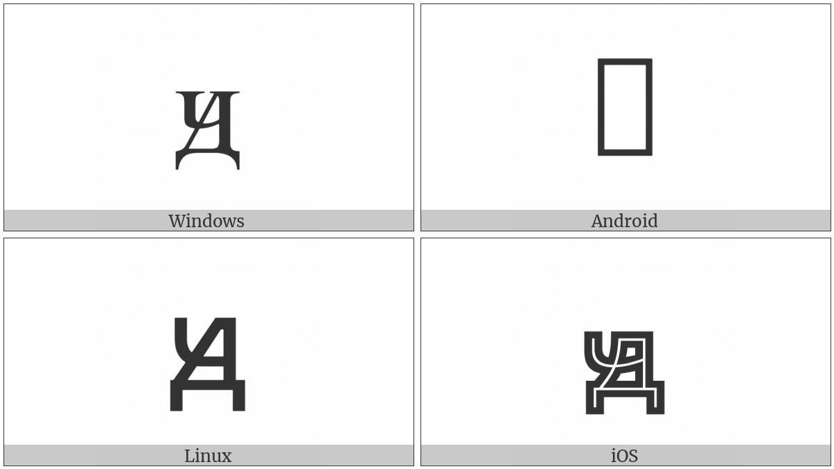 The image below shows how the “Cyrillic Small Letter Dche” symbol might look like on different operating systems. If the font in which this web site is displayed does not contain the symbol and there is no fallback font able to render it, you can use the image below to get an idea of what it should look like.