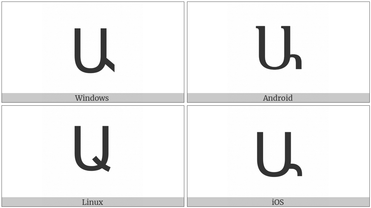 The image below shows how the “Armenian Capital Letter Ayb” symbol might look like on different operating systems. If the font in which this web site is displayed does not contain the symbol and there is no fallback font able to render it, you can use the image below to get an idea of what it should look like.