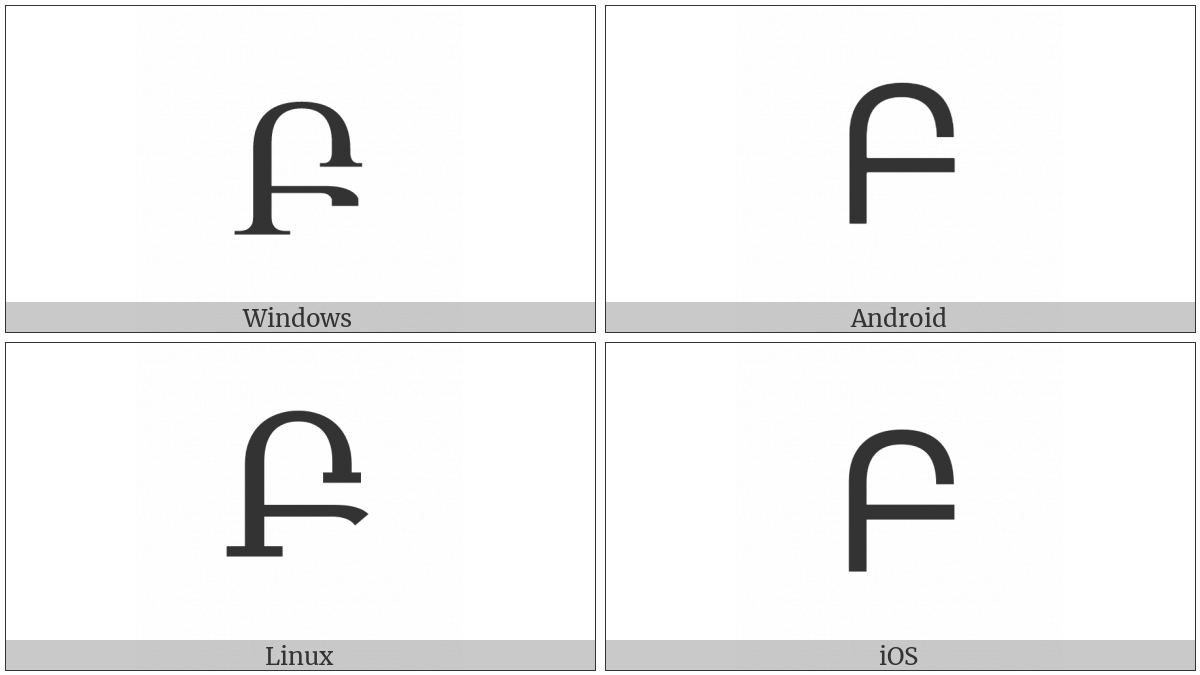 The image below shows how the “Armenian Capital Letter Ben” symbol might look like on different operating systems. If the font in which this web site is displayed does not contain the symbol and there is no fallback font able to render it, you can use the image below to get an idea of what it should look like.
