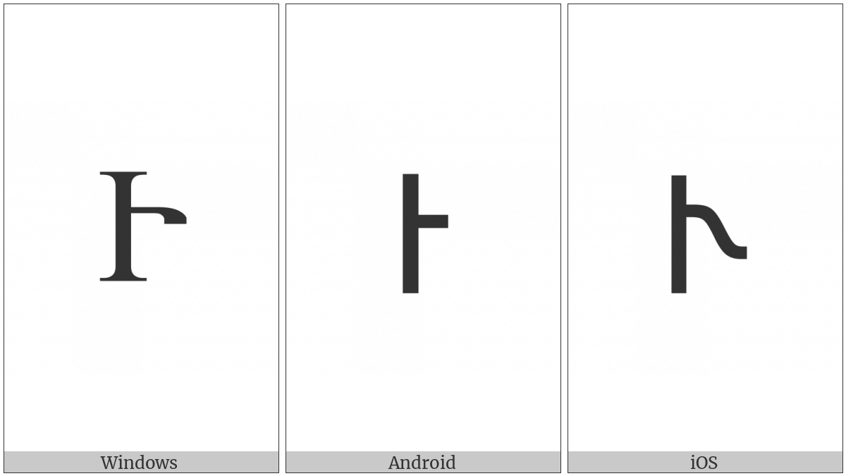 The image below shows how the “Armenian Capital Letter Yiwn” symbol might look like on different operating systems. If the font in which this web site is displayed does not contain the symbol and there is no fallback font able to render it, you can use the image below to get an idea of what it should look like.
