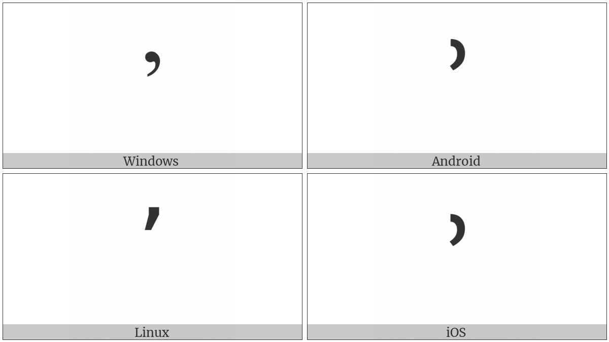 The image below shows how the “Armenian Apostrophe” symbol might look like on different operating systems. If the font in which this web site is displayed does not contain the symbol and there is no fallback font able to render it, you can use the image below to get an idea of what it should look like.